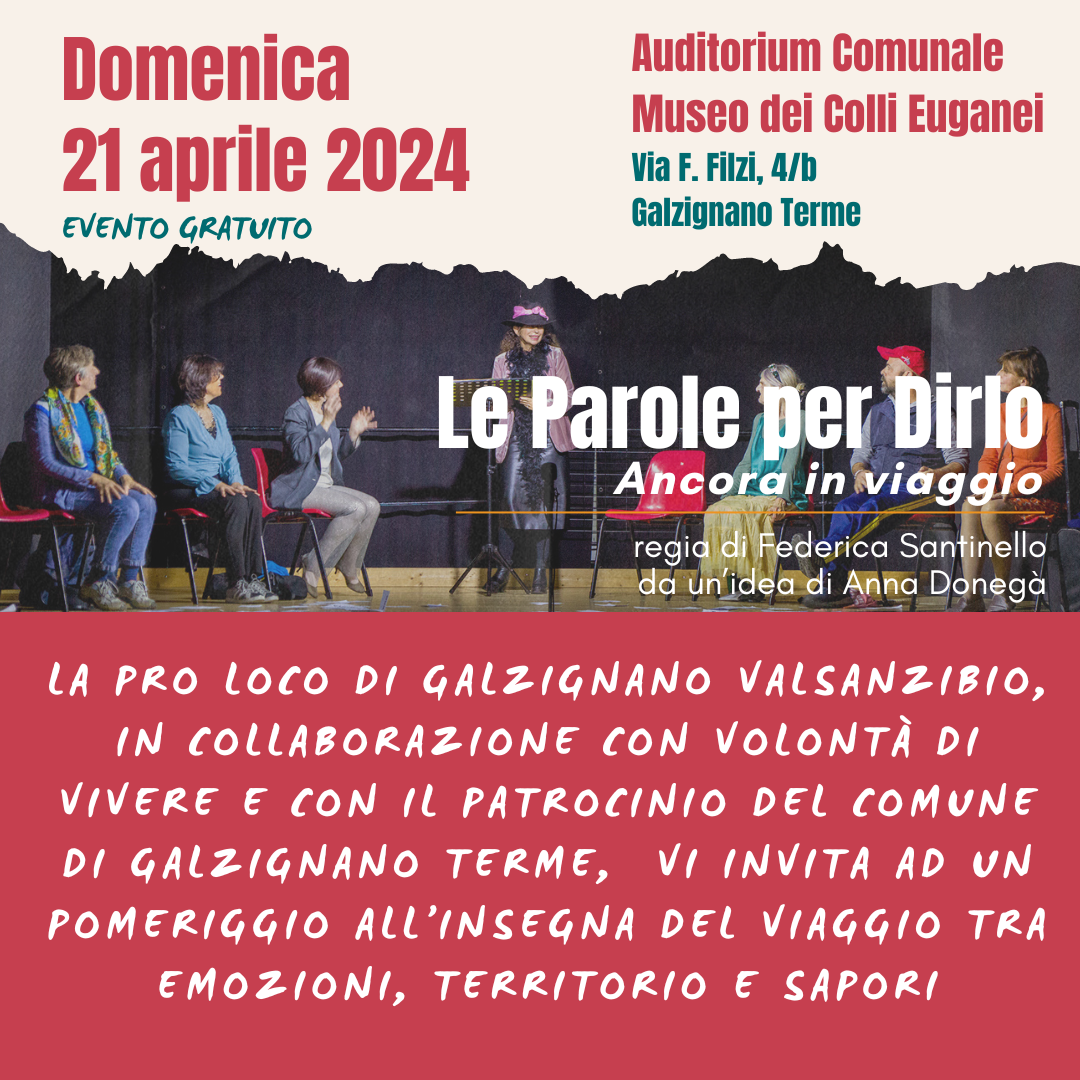Si va in scena, dopo la prima rappresentazione di dicembre, grazie all’invito che è arrivato dalla Pro Loco di Galzignano Valsanzibio che con grande sensibilità – insieme al Comune di Galzignano Terme che patrocina l’evento – ha voluto l’associazione come parte di un pomeriggio all’insegna del viaggio tra emozioni, territorio e sapori.